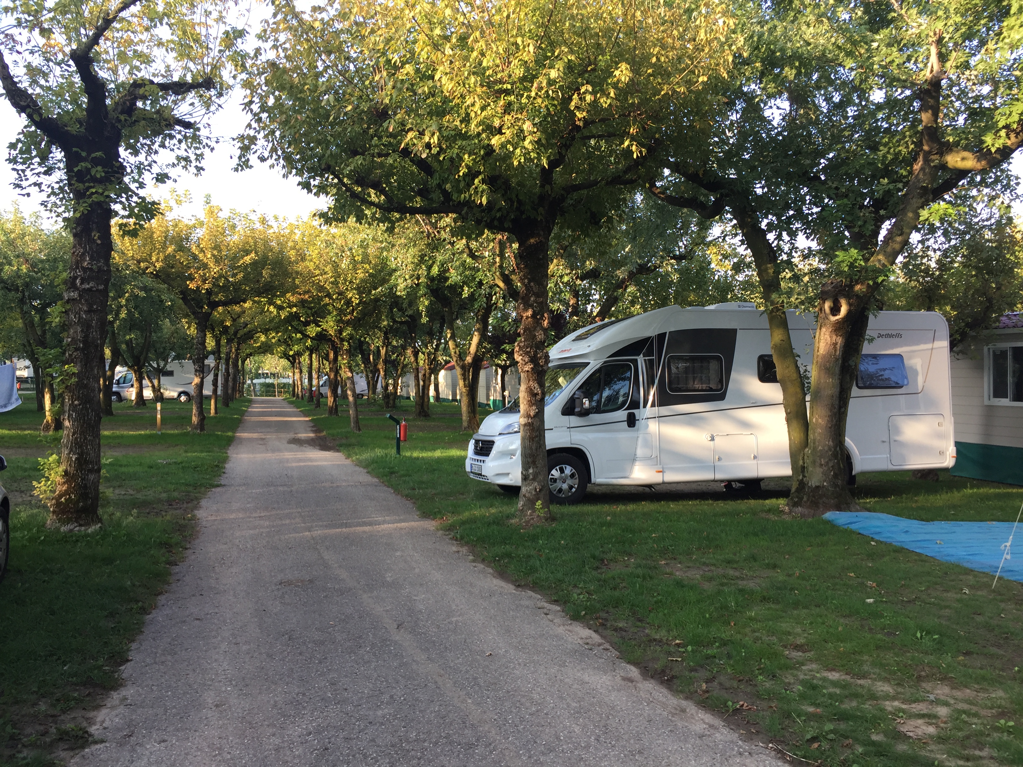 Auf dem Bild seht ihr die Stellplätze in der Via Triese - hierbei handelt es sich um ca. 100qm große Stellplätze mit schattigen Baumbestand.