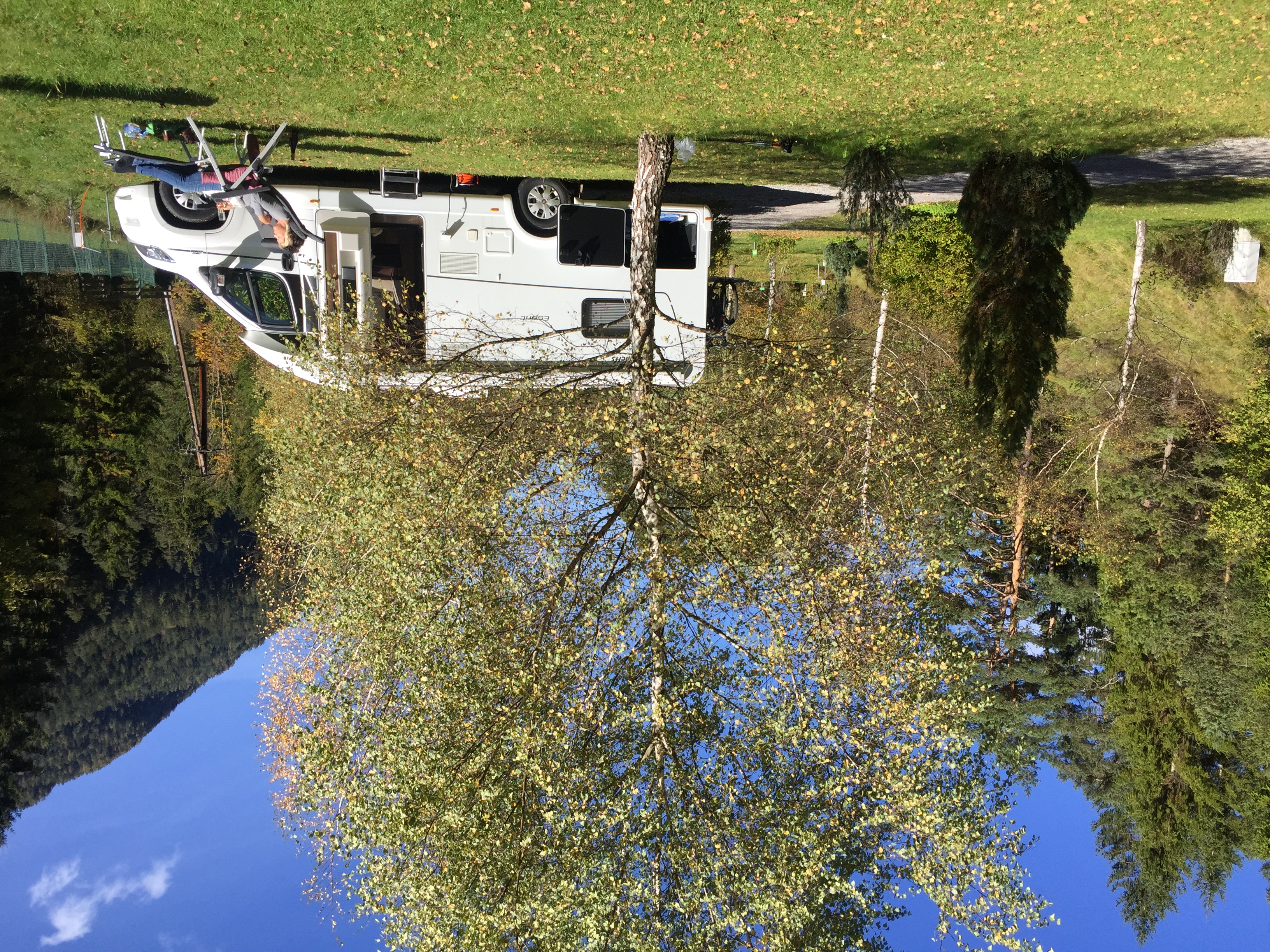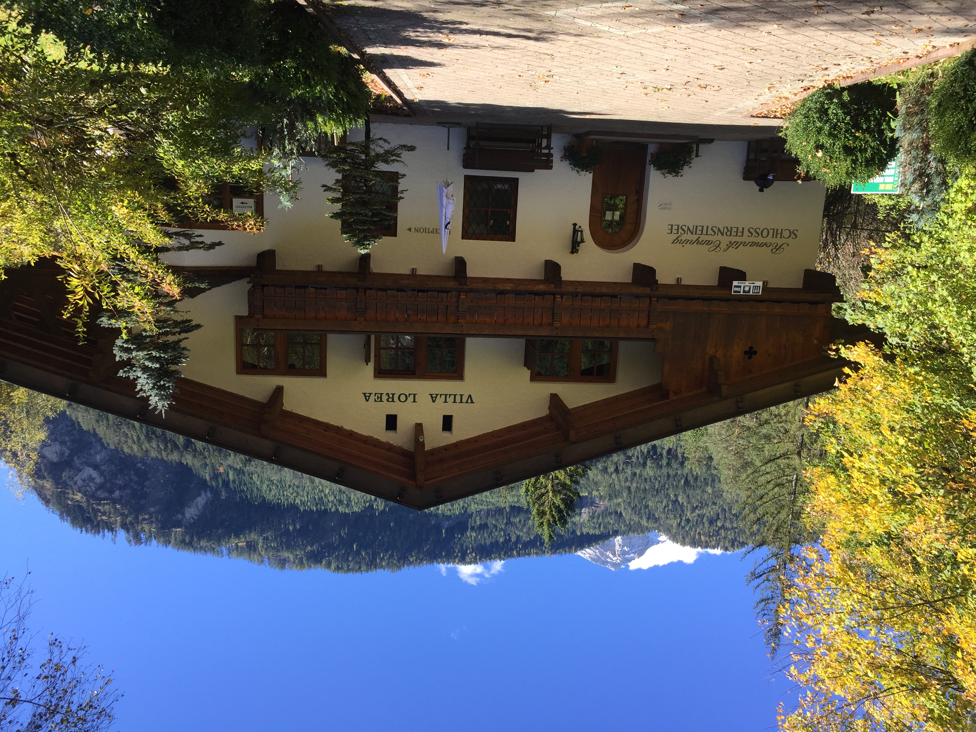 Aber jetzt zum Campingplatz ... den "Beiname" RomantikCampingplatz können wir für unseren Reisezeitraum Mitte Obtober nur unterstreichen. Auf unseren bisherigen Reisen haben wir schon oft die Route über den Fernpass gewählt und bedingt durch die direkte Anbindung an die Hauptverkahrsstraße die Zufahrt zu diesem Platz links liegen gelassen - und das war ein Fehler. Über einen für Fzg. Bis 12 Tonnen gut gesicherten geschotterten Weg erreicht man nach ca. 600 Meter die Zufahrt zum Campingplatz und schon dort beginnt die Romantik. Unmittelbar im Einfahrtsbereich befindet sich der Mittelpunkt des Platzes - die Villa Lorea.